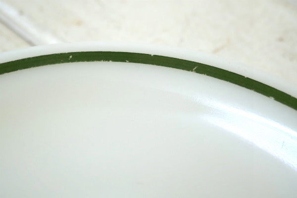 白色ミルクガラスの温かみあるボディに、深緑色のラインが入っており、ミッドセンチュリー時代のモダンなデザインです。