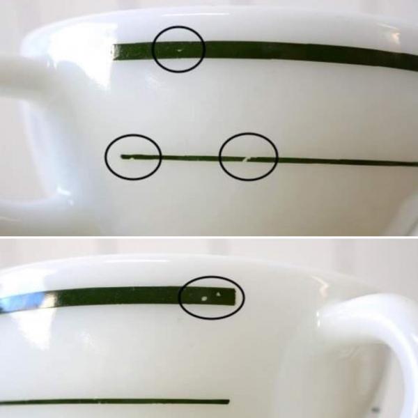 経年による多少の使用感、スリキズ・カップ&ソーサー共にグリーンライン2〜3箇所にペイントロス部分が見られますが、ヒビ・欠けはございません。
