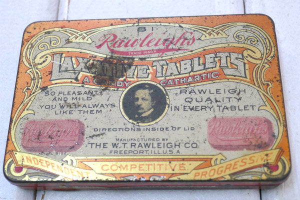 アメリカ中西部・イリノイ州 シカゴで見つけました・・『THE W.T. RAWLEIGH CO.』の【Rawleigh's Laxative Tablets】ヴィンテージ・ティン缶です。