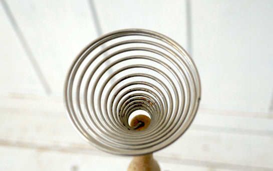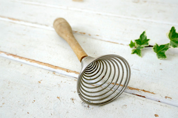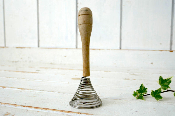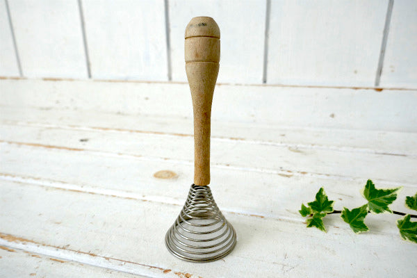 アメリカ中西部・シカゴで見つけました・・木製ハンドルのコイル式・ヴィンテージ・ハンドミキサー(泡立て器)です。