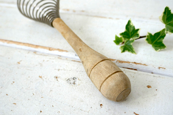 シャビー 木製ハンドル コイル式 ヴィンテージ ハンドミキサー 泡立て器 エッグウィスク ホイッパー