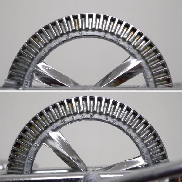 中央の丸いリングに【MADE IN U.S.A. / PATENTS APPLIED FOR MARY ANN】のエンボス文字、ミキサー羽の表面に【EKCO U.S.A.】の刻印が入っています。