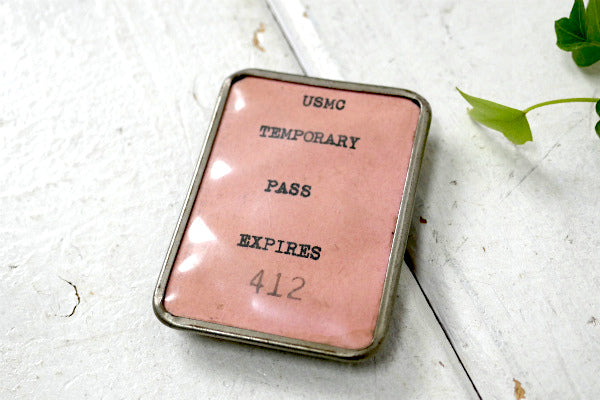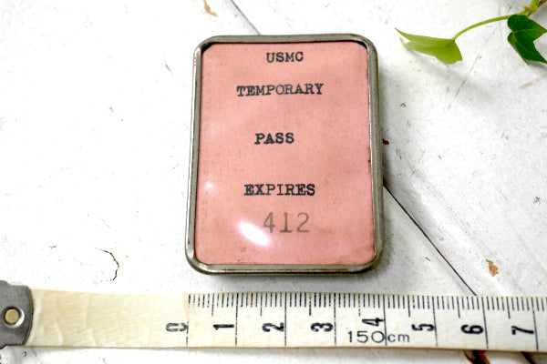 アメリカ西海岸・カリフォルニア サンフランシスコで見つけました・・”ミリタリー・USMC TEMPORARY PASS EXPIRES 412 ”アメリカ海兵隊・ヴィンテージ・ID バッジになります。