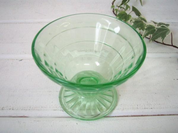 アメリカ西海岸・サンフランシスコでみつけました・・緑色・アンティーク・シャーベットグラス(氷コップ)です。