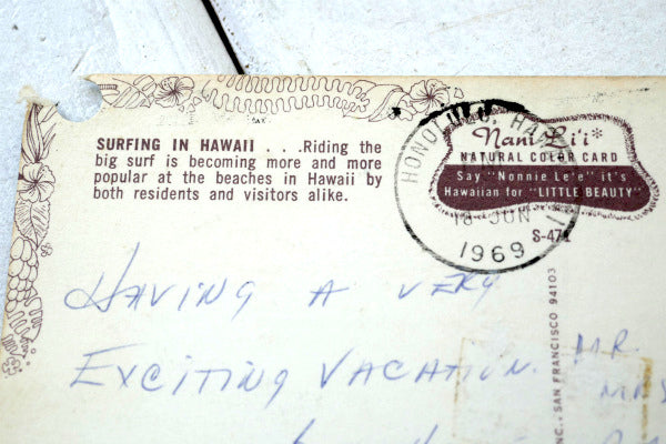 ハワイ サーフィン SURFING IN HAWAII ヴィンテージ・ポストカード エンタイア・切手