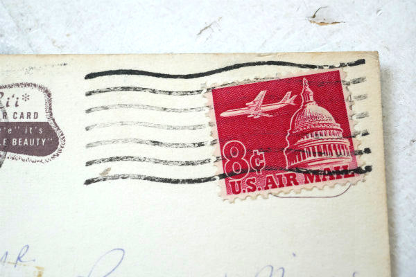 アメリカ合衆国・ハワイ・オアフ島で見つけてきました・・ハワイ・サーフィン”SURFING IN HAWAII”ヴィンテージ・ポストカード(エンタイア・切手(アメリカ航空切手・国会議事堂)・スタンプ・ハガキ・絵葉書・印刷物)です。