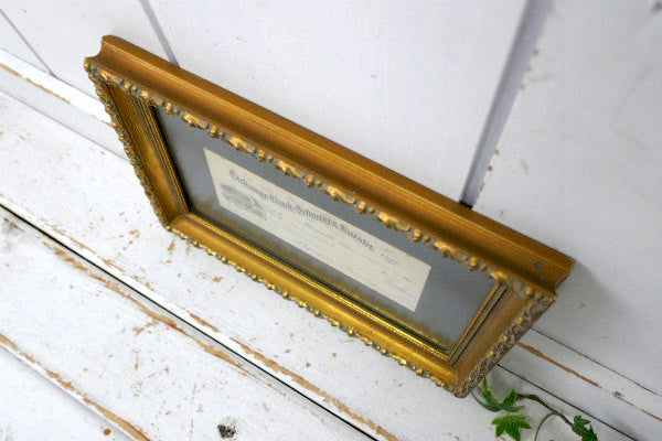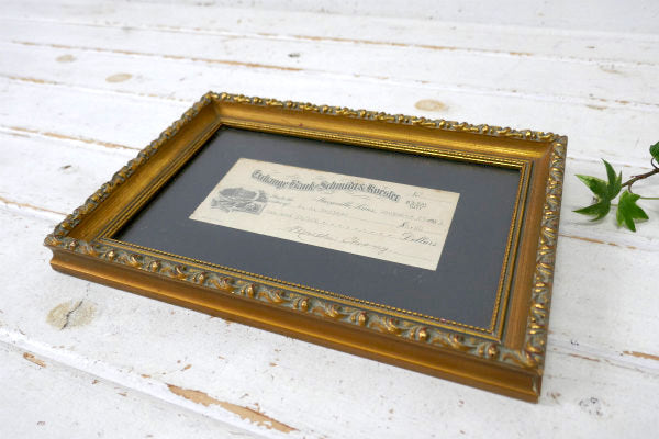 ゴールドフレーム 1953年 銀行 小切手入り ヴィンテージ 木製 フレーム 額縁 額装 ゴージャス