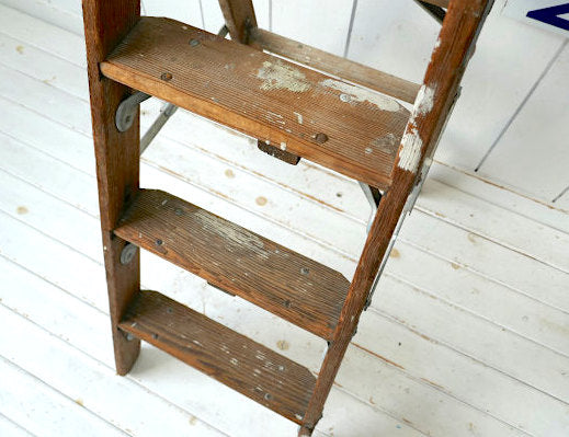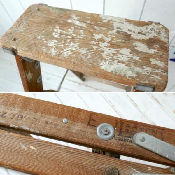 LARSON ミドルサイズ シャビー 木製 ヴィンテージ ステップラダー 脚立 ガーデニング US