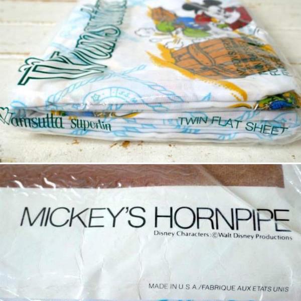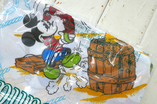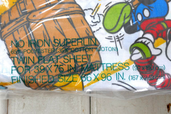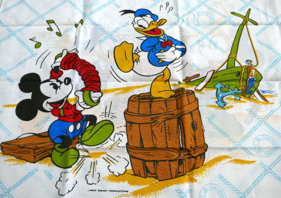 ミッキー&ドナルドダック トレジャーハント 宝探し柄 デッドストック ヴィンテージ フラットシーツ