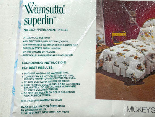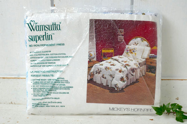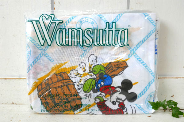 アメリカ西海岸・カリフォルニア州で見つけました・・1846年より続くベッドリネンやタオルなどのテキスタイル会社“Wamsutta Mills社”の、『ミッキーマウス&ドナルドダック』デッドストック未使用・宝探し柄・ヴィンテージ・フラットシーツ(ツインサイズ)です。