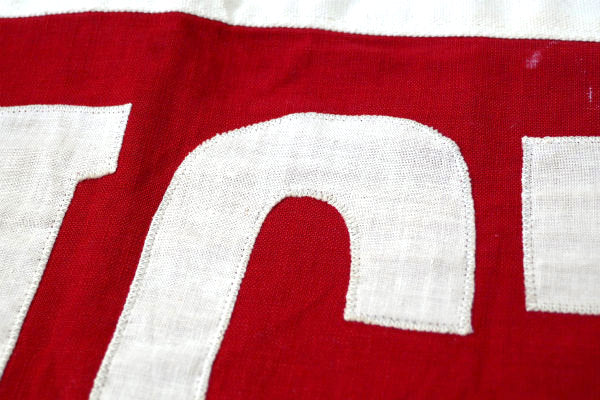 コットン製、フラッグ上部の両端にハトメがございます。