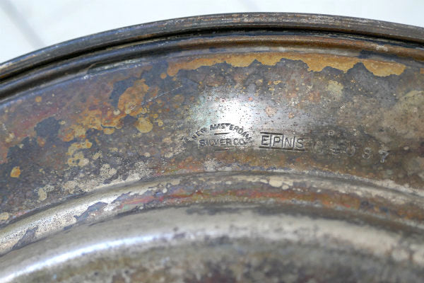 アメリカ西海岸・サンフランシスコで見つけました・・『NEW AMSTERDAM SILVER CO』のシルバープレート製・ラウンド型・アンティーク・トレイ(お盆)です。