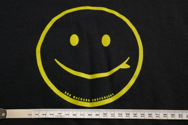 ブラックボディのフロントに、スマイルの口がサーフボード デザインになった可愛いロゴ&【ROB MACHADO SURFBOARDS】の文字がプリントされています。