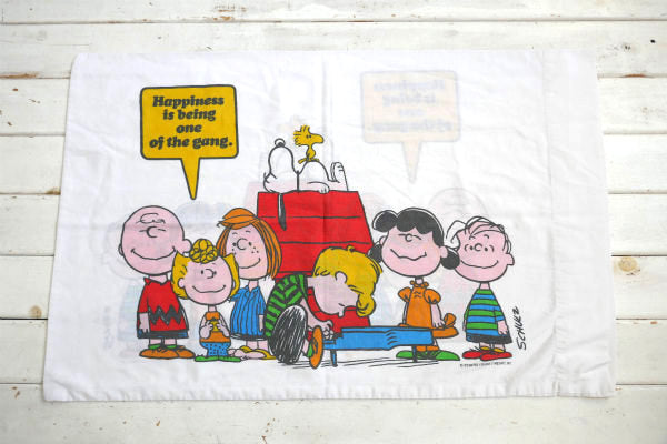 スヌーピー ピーナッツの仲間 ハピネス 1971年 ヴィンテージ ピローケース 枕カバー USA