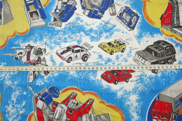 コンボイ・ランボル・バンブルなどが戦っているカラフルな総柄プリントです。