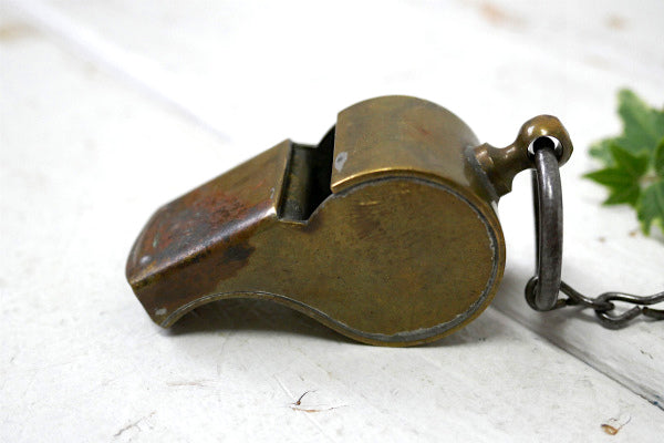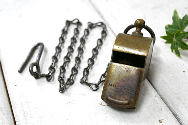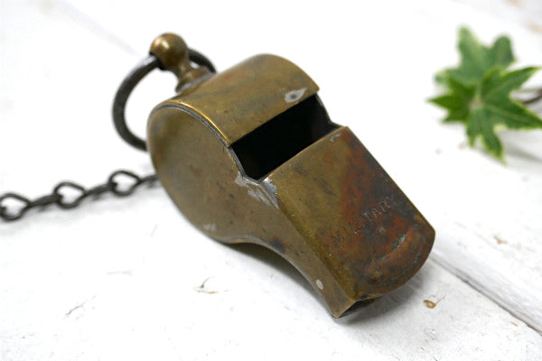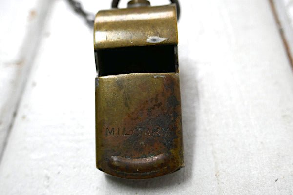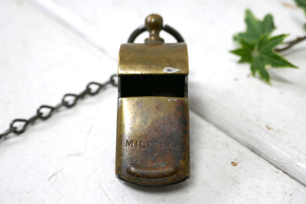 アメリカ西海岸 カリフォルニア州 サンフランシスコで見つけてきました・・ ”MILITARY・ミリタリー"ヴィンテージ・オールド・真鍮製・ホイッスル (呼び笛・SOLID BRASS)・チェーン付きです。