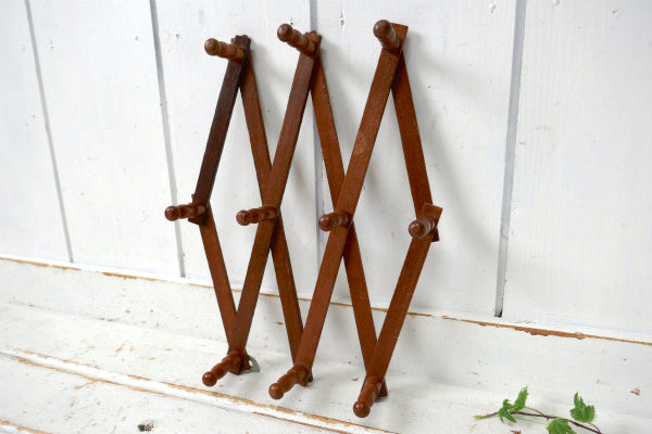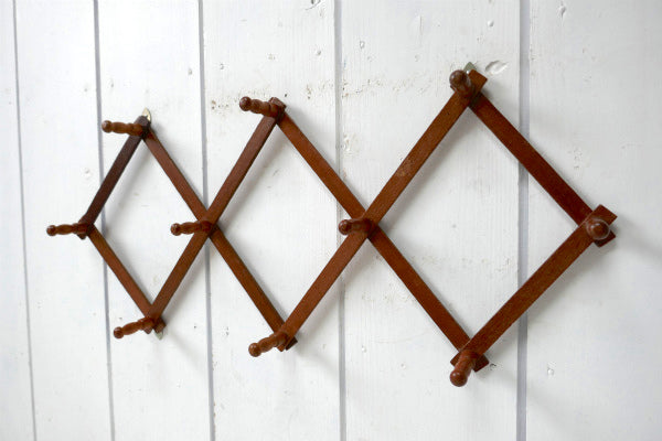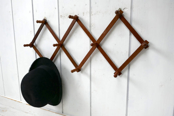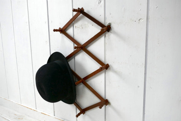 レトロ 木製 壁掛け 伸縮式 ヴィンテージ ウォールフック ハットラック コートフック インテリア
