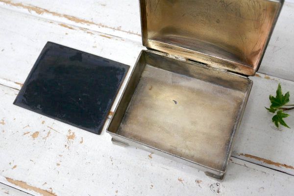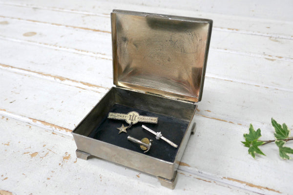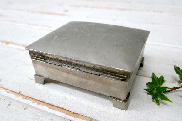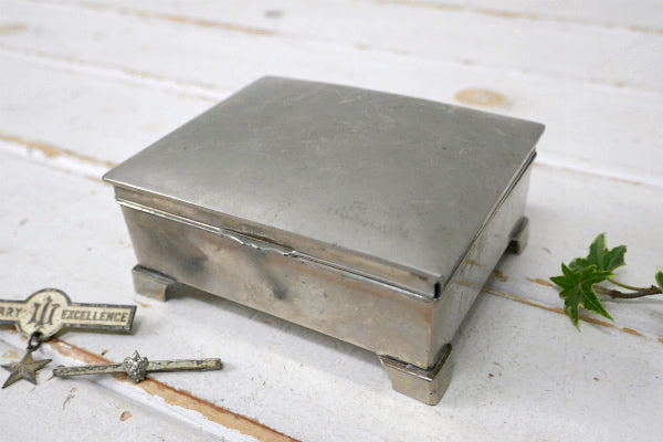 アールデコ シルバープレート 脚付き ヴィンテージ トリンケットボックス 宝石箱 ジュエリーボックス