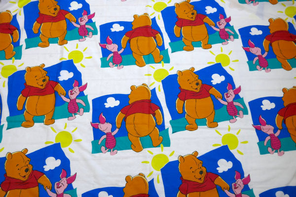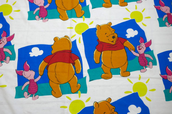 ディズニー くまのプーさん ピグレット プーさん お散歩柄 ヴィンテージ ユーズドシーツ(1/2) 美品 USA