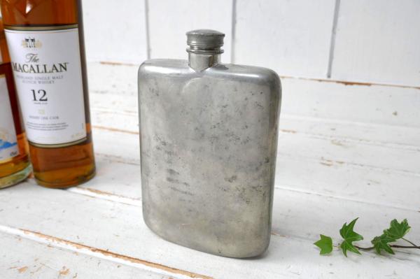 イギリス ブルックスブラザーズ ピューター製 アンティーク スキットル ヒップフラスコ ウイスキー