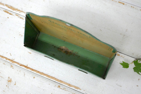 1930~1940年代 キッチンの壁にレシピカードを収納するケースで、手前にカードスロットが付いており、お料理中に見たいレシピカードを挟めるようになっております。 グリーン×クリーム色のカラーリングがとてもキュートなお品です。