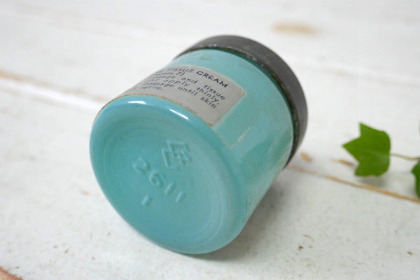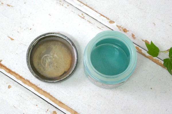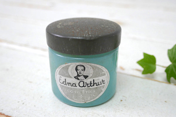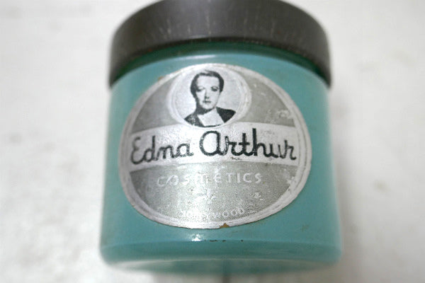 Edna arthur ハリウッド 水色 アンティーク ガラス容器 クリームジャー USA 化粧品