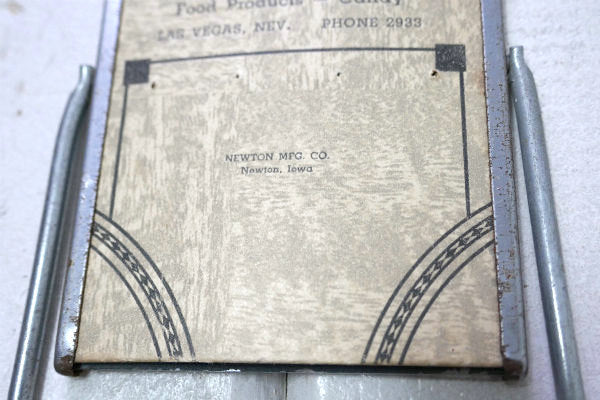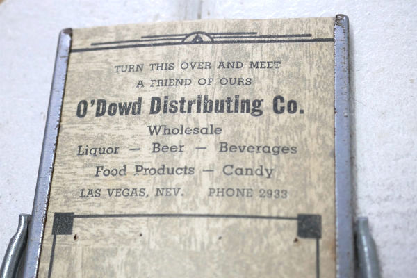 1940~1950's頃 広告部分は厚紙製で、アールデコデザイン&【TURN THIS OVER AND MEET A FRIEND OF OURS / O'Dowd Distributing Co. / Wholesale Liquor- Beer-Beverages Food Products- Candy / LAS VEGAS, NEV. /NEWTON MFG, CO. Newton, Iowa】の文字プリントが入っています。