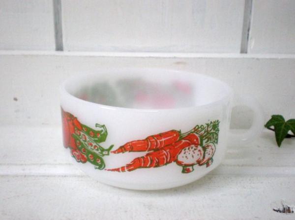 【グラスベイク】Glasbake・ベジタブル柄・ヴィンテージ・スープマグ USA