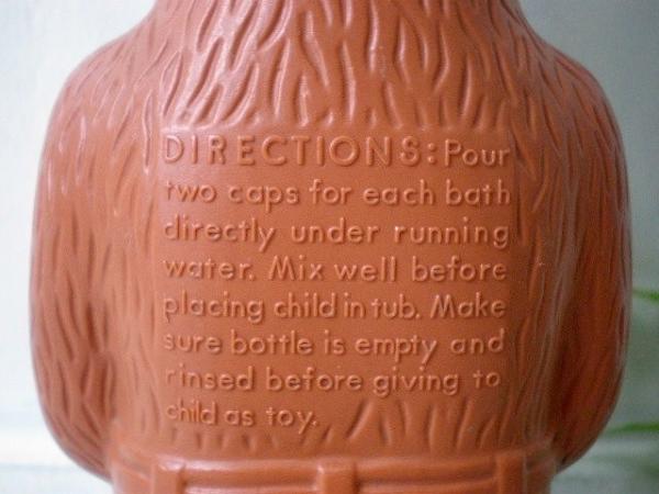アメリカで見つけました・・『スモ-キーベア』のプラスティック製・ヴィンテージ・バスボトルです。