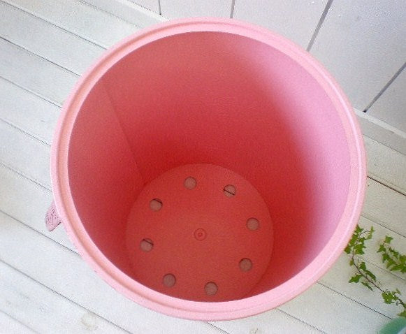 アメリカ西海岸・ロサンゼルスでみつけました・・ピンク色の筒型ヴィンテージ・ハンパー(洗濯カゴ/ランドリーバスケット)です。