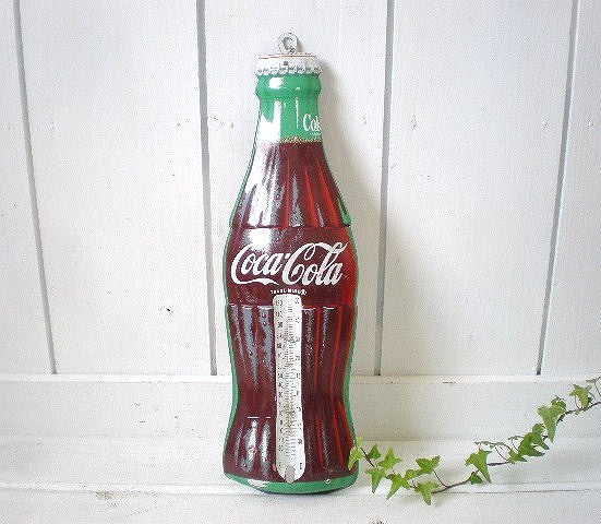 カリフォルニアでみつけました・・ボトルの形をした『コカコーラ(Coca-Cola)』のブリキ製ヴィンテージ・サイン(看板)です♪