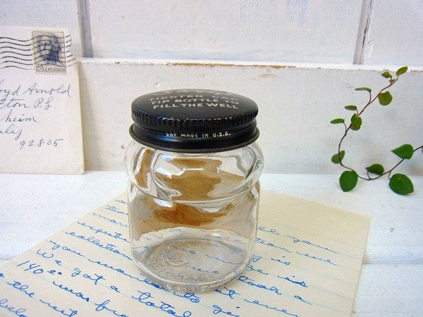 ブリキ製のフタには【Skrip TIGHTEN CAP.TIP BOTTLE TO FILL THE WELL】とございます。