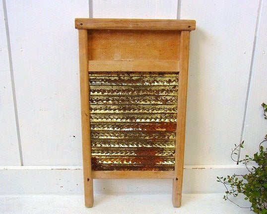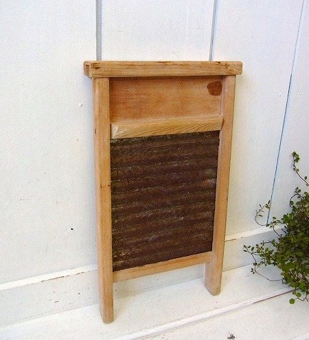 アメリカでみつけました・・木製×ブリキ製の小さなヴィンテージ・ウォッシュボード(洗濯板)です。