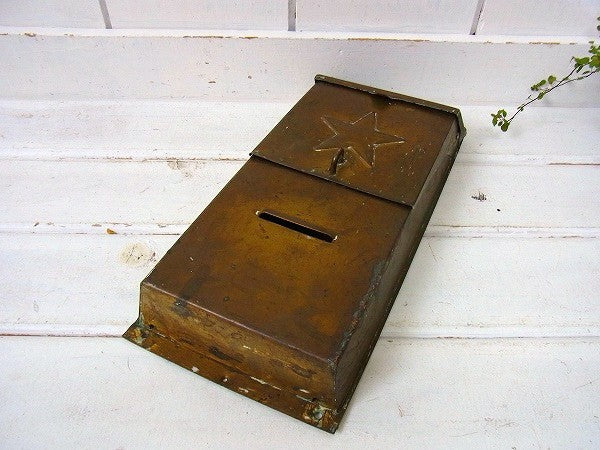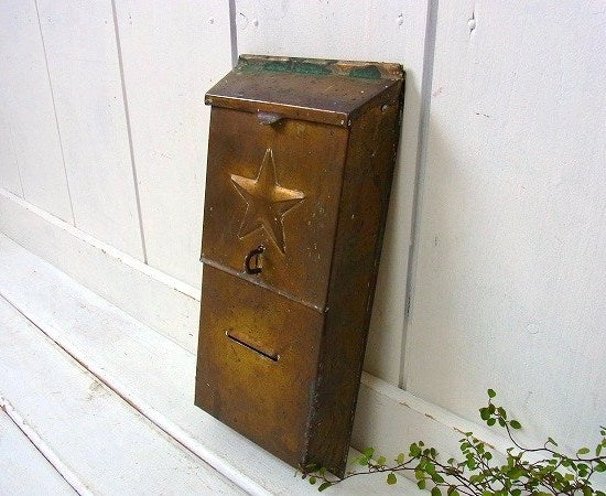 星モチーフ・真鍮製・アンティーク・メールボックス/郵便受け/ポスト USA