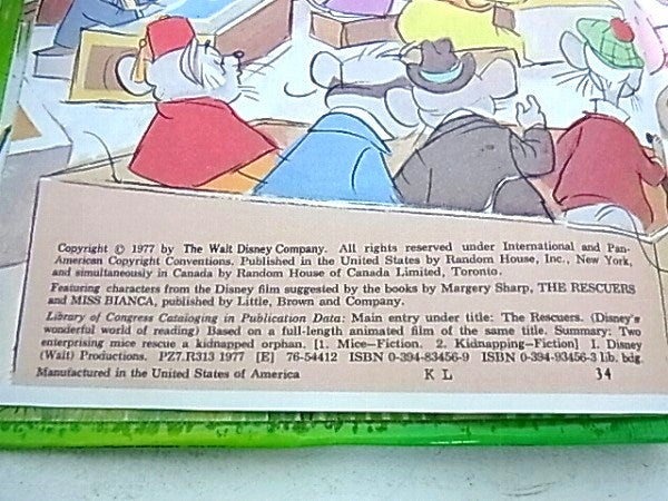 アメリカでみつけました・・ウォルトディズニー『The Rescuers(ビアンカの大冒険)』のヴィンテージ絵本です。