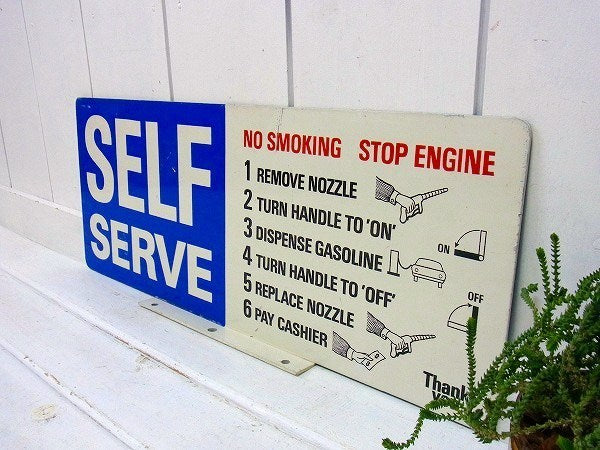 【SELF SERVE】ガソリンスタンドのスチール製・ヴィンテージ・サイン/看板 USA