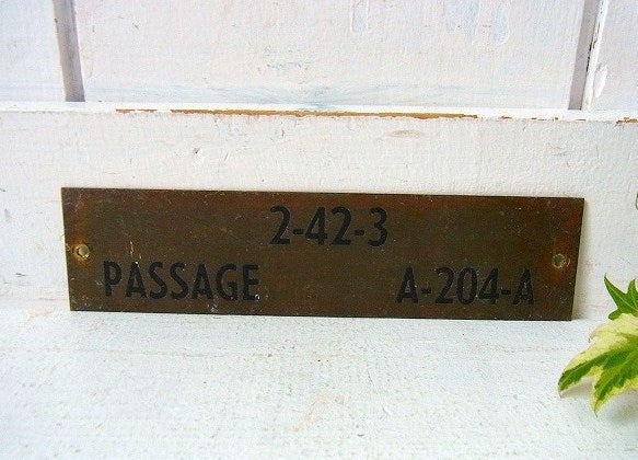 【PASSAGE】アメリカ海軍・真鍮製・40’sアンティーク・船内プレート/標示プレート