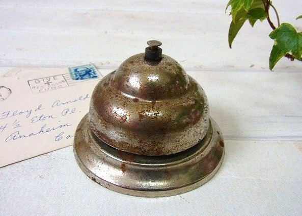 アメリカでみつけました・・メタル製のアンティーク・呼び鈴(卓上ベル)です。