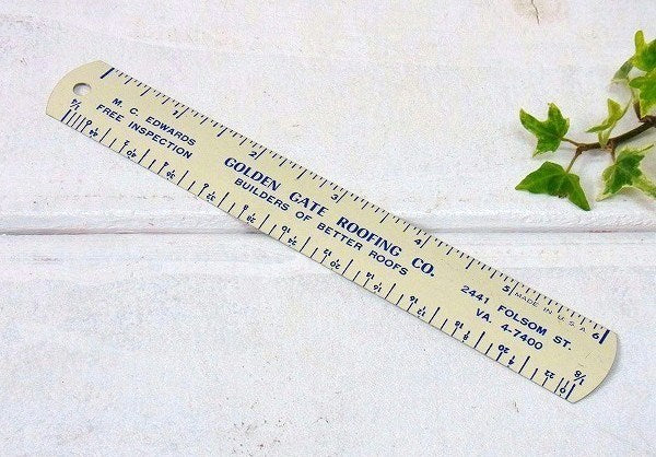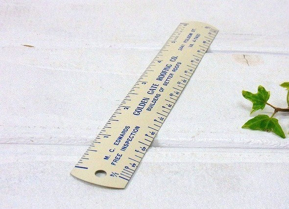 アメリカで見つけました・・『GOLDEN GATE ROOFING CO.』のノベルティ(販促品)・ヴィンテージ・ルーラー(物さし)です。