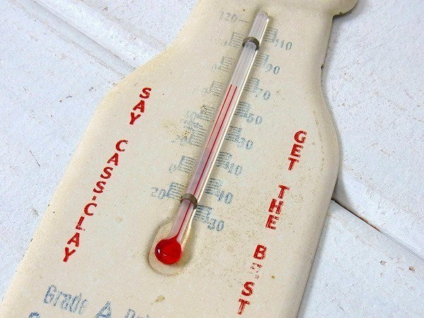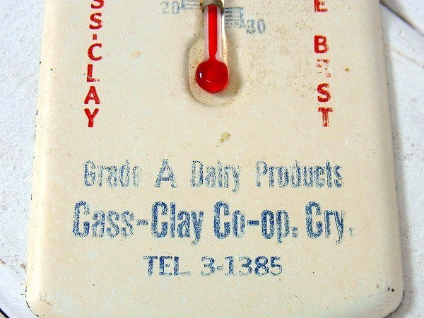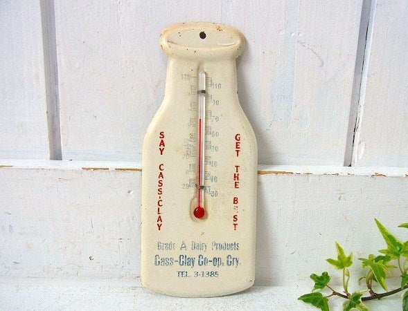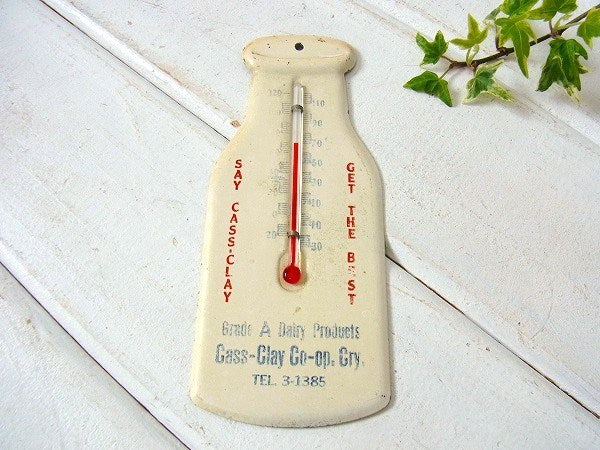 アメリカで見つけました・・ミルクボトルの形をした『Cass-Clay Co』の小さなノベルティ・アンティーク・温度計(サーモメーター/サイン)です。