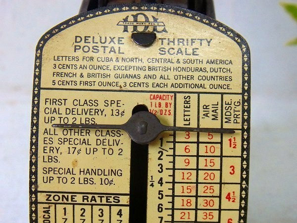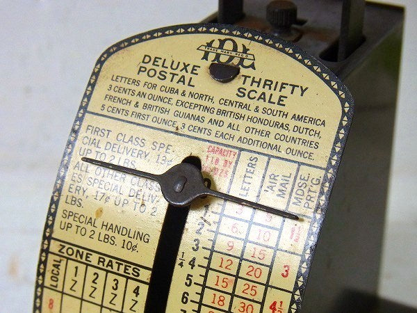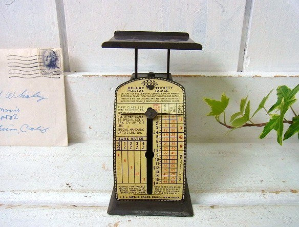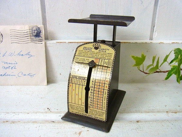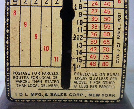 アメリカで見つけました・・・『IDL MFG.&SALES CORP.』の【DELUXE THRIFTY POSTAL SCALE】ティン製・アンティーク・ポスタルスケール(量り)です。