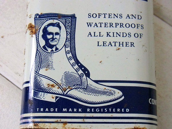 1921年創業のブーツやバッグなど革製品のメンテナンスに使用する液体オイルが入っていた缶になります。
