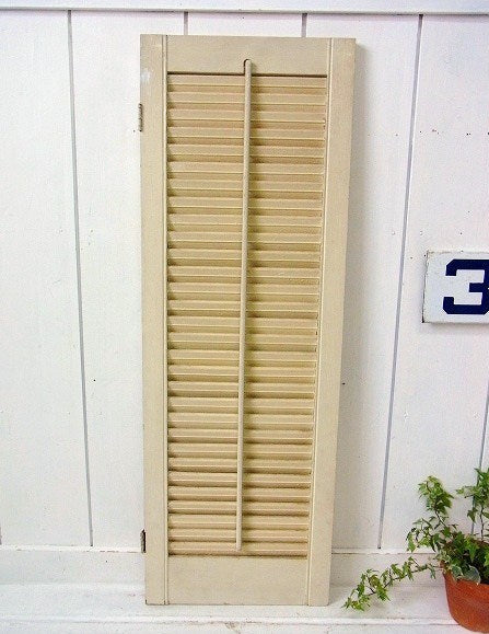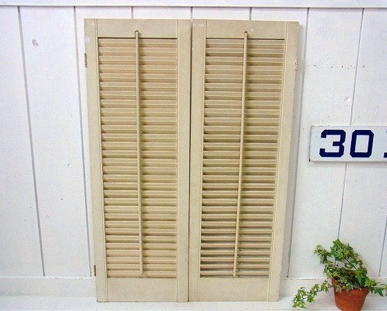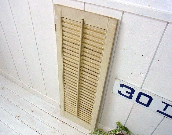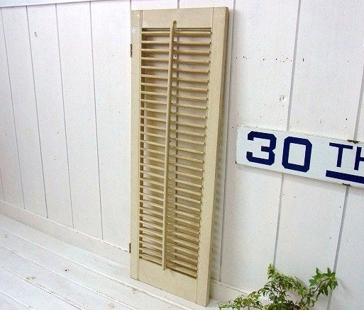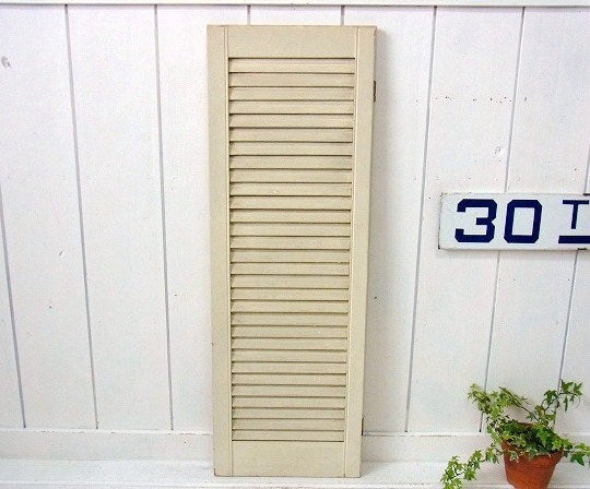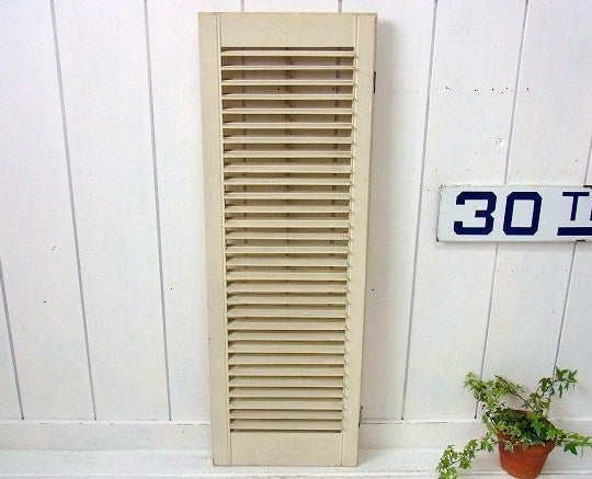 アイボリー色のシャビーな木製・アンティーク・ルーバー/ヴォレー/シャッター/建具 USA