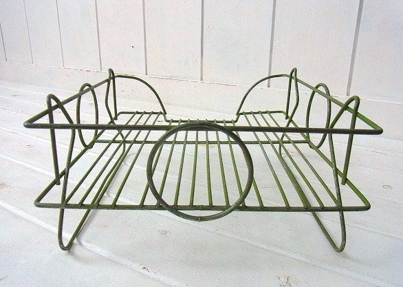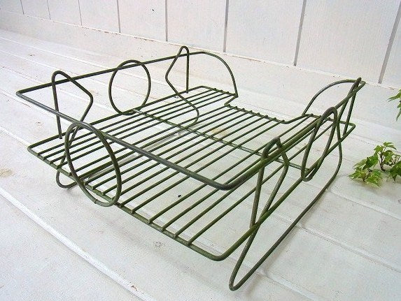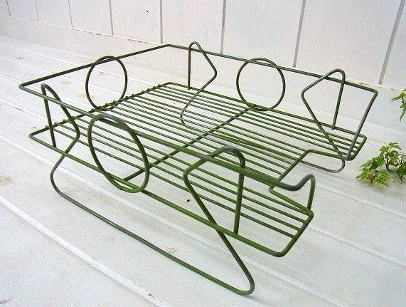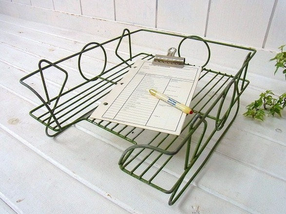 アメリカで見つけました・・グリーン色のヴィンテージ・ワイヤー書類トレイです。
