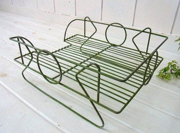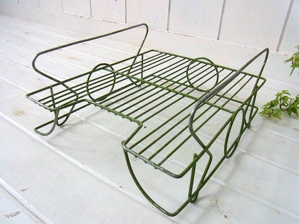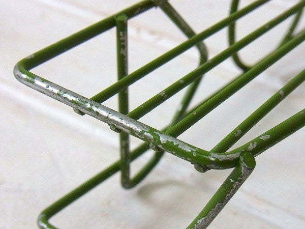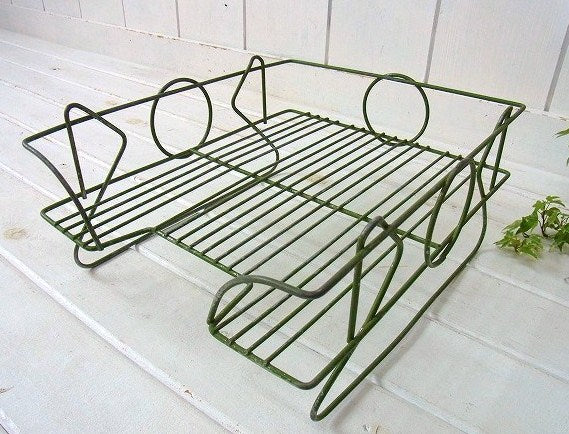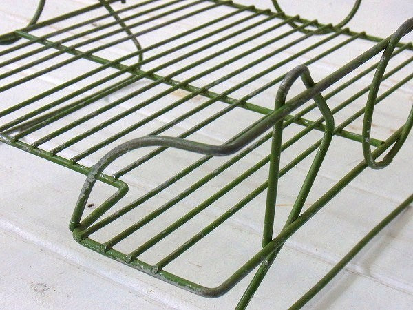 グリーン色の脚付き・ヴィンテージ・ワイヤー書類トレイ/書類ラック/デスクトレイ USA
