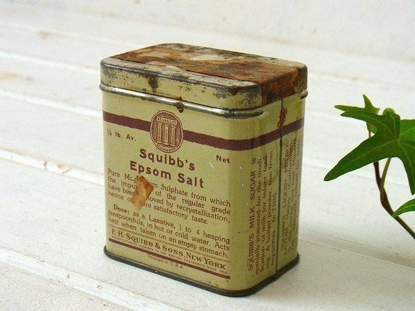 アメリカで見つけました・・『E・R・SQUIBB&SONS』の【Epsom Salt】ヴィンテージ・ティン缶です。