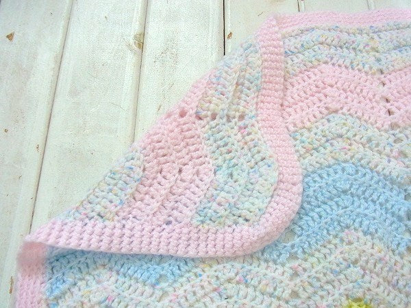 【パステルカラー・ハンドメイド】ヴィンテージ・ニット・ベビーブランケット/ひざ掛け USA