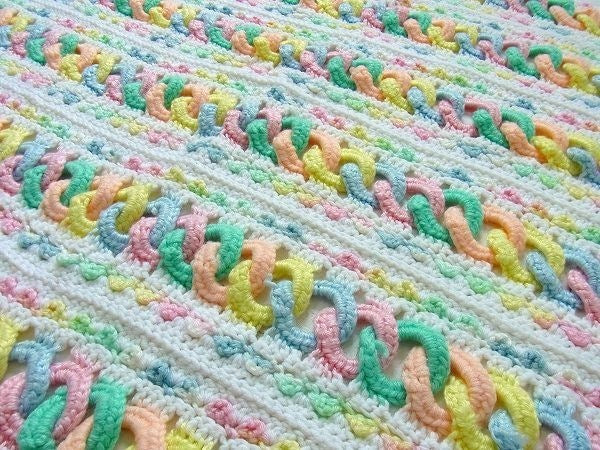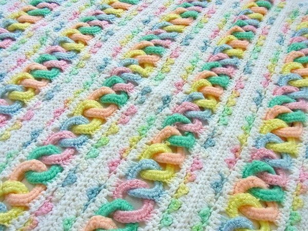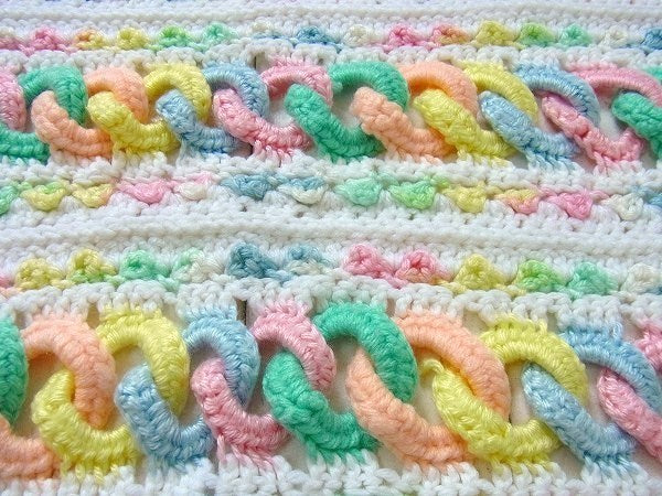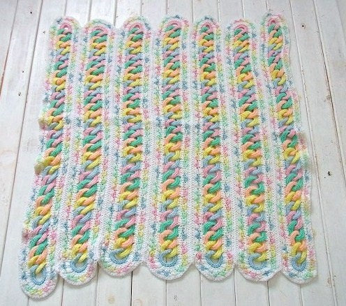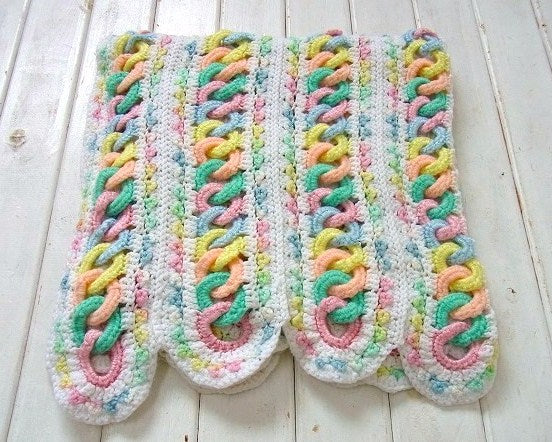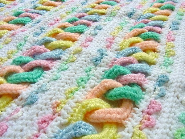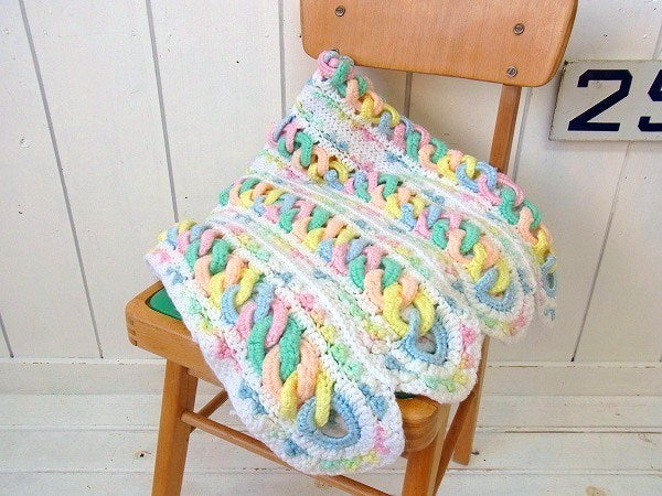 立体リング編み・パステルカラー・ハンドメイド・ヴィンテージ・ニッブランケット/ひざ掛け USA