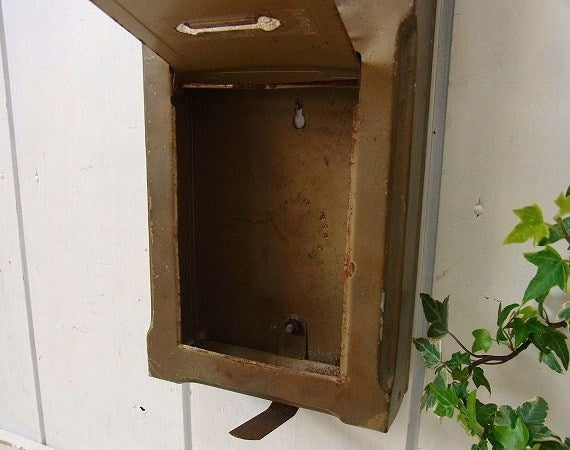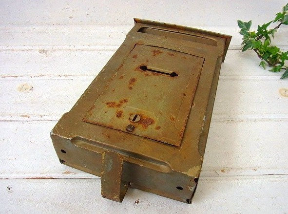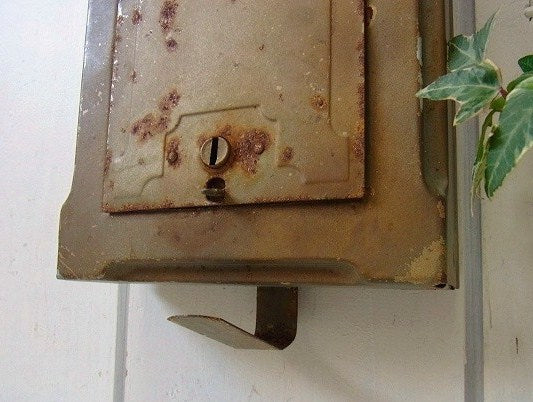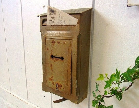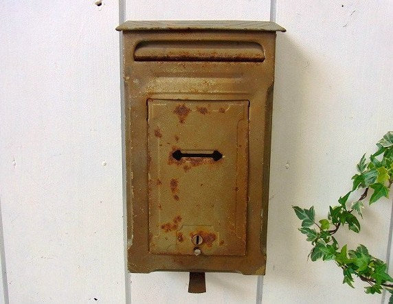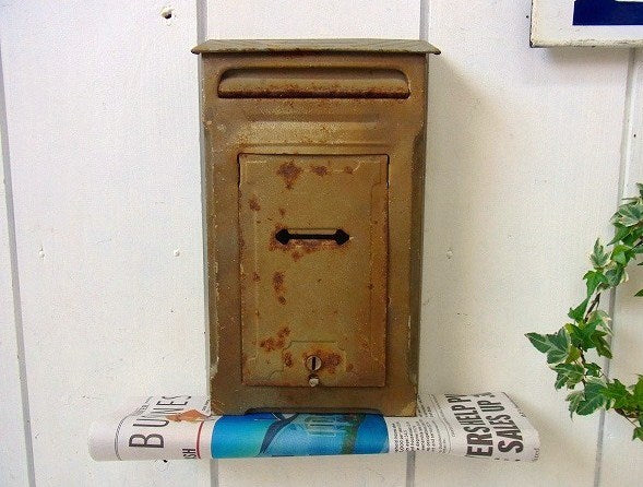 新聞受け付き・ゴールド色・ティン製・アンティーク・メールボックス/郵便受け/ポスト USA