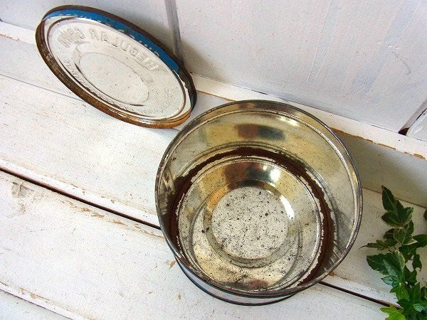 コーヒーが入っていたフタ付きのブリキ缶です。